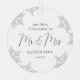 Personalized first Christmas ornaments feature elegant trendy Mr. and Mrs. script and snowflakes in light gray, black and white, optional couple photo on the back, modern and simple.
