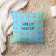 Snowflakes Patterns Hello Winter Typography Blue Throw Pillow