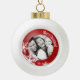 Personalized Holiday ornament with modern design featuring winter white snowflakes on red and personalized round photo. A beautiful Christmas tree ornament for your family or a keepsake for your first Christmas together!