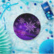 Pink and silver snowflakes riding on a pink and purple swirly winter breeze. Set on a pink, blue and purple background. Fun and vibrant design.