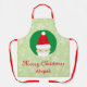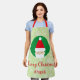An lovely apron perfect for the Christmas season, this product features a green snowflake background with "Merry Christmas" written in red cursive font. Your name is written underneath in red font. Personalize your apron today!
