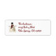 Cute return address labels, with country primitive graphics of a snowman standing next to a small pine tree.
