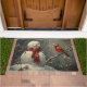 A heartwarming oil painting featuring a cheerful snowman and a bright red cardinal, capturing the cozy magic of wintertime.