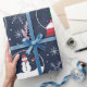 Celebrate the season with this festive wrapping paper featuring charming snowmen and Christmas trees nestled inside snow globes on a rich navy blue background. This whimsical holiday design brings cozy winter magic and nostalgic charm to your gift-giving