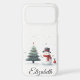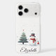 A charming snowman paired with a beautifully decorated evergreen, set amidst a peaceful snowfall. This minimalist holiday design captures the warmth and elegance of the winter season.