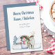 Snowman and Reindeer Snowy Text Personalized Holiday Card