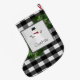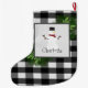 Add a festive touch to your fireplace mantle this holiday season with a Snowman Buffalo Plaid Stocking. Stocking design features a box adorned with pine branches and charming snowman against a black and white buffalo plaid background with a space you can add your name for personalization. Additional gift and holiday items available with this design as well.