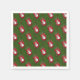 This Christmas holiday napkin design features a tiled photograph of a red and green stocking with an adorable snowman dressed in a seasonal plaid scarf and hat set over a green background. Click customize to add text in a typeface style, color and size you prefer. The design is also available in a red and white background.