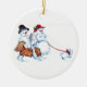 This cool Christmas ornament features a snow couple and their dog and is a gorgeous ornament to hang on your tree these holidays.