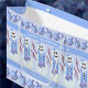 Personalize these fun blue and white Hanukkah gift bags for those extra special gifts during the eight crazy nights with family and friends. Rows of soft blue and purple dreidels accent the top and bottom of these large custom gift bags. A row of happy little Jewish snowmen around the middle of the bag wave hello while two borders of sky blue contain simple white text that can be customized, or removed, as you wish. Add the recipient's name and your name as the gift giver to make each bag unique or edit the wording to general Happy Hanukkah greetings. Cute in every way, custom Hanukkah gift bags add a special something to your gift giving as you celebrate the Festival of Lights.