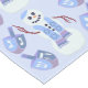 Add your name to this personalized table runner for Hanukkah and add a custom touch to your parties and family gatherings. Designed with a repeating pattern of happy little Jewish snowmen and matching dreidels on a pastel blue background, the center is where you can add your name along with HAPPY HANUKKAH in simple dark blue lettering or edit the text template to just a holiday greeting or remove all the text entirely if you prefer. Cute for kids, families and adults too, this Chanukah table runner is the perfect touch to quickly add a little Festival of Lights décor to any table.