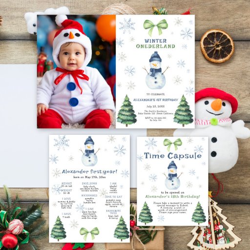 Snowman Evergreen Time Capsule 1st birthday Poster