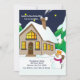 A cute, holiday-theme design featuring a whimsical snowman. He's in front of a home and he's dressed in his scarf and hat and holding a broom. Design by Vector.me.