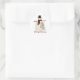 These cute holiday envelope stickers are done in a country primitive graphic art style. A festive snowman in top hat and scarf is standing next to a small pine tree. Merry Christmas in red script text, under the snowman. Personalize the text to say anything you want.