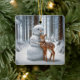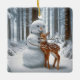 Snowman Hugging a Fawn Ceramic Ornament