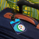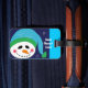 A fun luggage tag featuring a cute snowman in a blue hat, cute expression! Customize as desired.