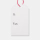 The quality and weight of the paper used was excellent. I love the feminine floral design. I gave received so many compliments on the unique cut of the tag. I also use these tags as a business card. This is my 3rd time ordering this design. I love it! I was very pleased with the printing. I was excited that I was able to print separate messages on both sides of the tag. Very clean look.