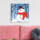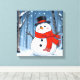 A jolly snowman stands proudly in a serene, snow-covered forest, wearing a bright red scarf and classic black hat. The tranquil winter scene captures the magic of the season, evoking feelings of warmth and holiday cheer.