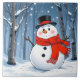 Snowman in cold forest with red scarf ceramic tile