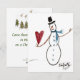 Snowman in TopHat Dances with a Red Heart Holiday Card
