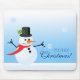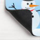 Snowman mouse pad with a cute snowman wearing a red scarf and a black hat on a fading blue background, who is enjoying the winter season as snowflakes of different shapes keep falling down. Ideal gift for Christmas or any other occasion. © Morning 6