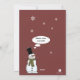 A delightful, wintery design featuring a whimsical snowman dressed in his scarf and hat at his front door. The door has a beautiful berry wreath and a light snow is falling.