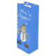 This is a fun seasonal wine gift bag featuring a cute cartoon snowman with a scarf and Santa hat, and heart shaped buttons. Behind him is a snowflake filled, pretty blue sky. The text, in white and dark blue, says Merry Christmas on one side and from (your name) on the other. All the text, however, may be custom changed to your own taste. Both sides of the bag have the same image. *Thanks to Real Deal Clipart for the clipart used to create this design.