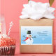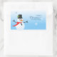 Snowman rectangle sticker with a cute snowman wearing a red scarf and a black hat on a fading blue background, who is enjoying the winter season as snowflakes of different shapes keep falling down. Ideal for Christmas or any other occasion. Available in other shapes as well. © Morning 6