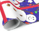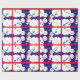 30 inches x 6 feet Snowman Christmas wrapping paper for all your holiday gifts featuring a blue background with red ribbons dividing the scene.