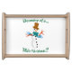 Serve your guests in style with this serving tray. Trays are perfect for serving drinks and appetizers, both inside and outdoors, for presenting glassware and spirits for special occasions or everyday use, and serving breakfast in bed. They're versatile enough to go beyond serving drinks and can be used on a dresser to organize makeup, to keep a coffee table organized, a great catchall on desks, and consoles. Your guest expect the best form you, so serve them correctly with a decorative serving tray.