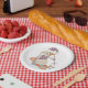 A snowman skiing with skis, poles and a hat. This design looks really effective on these Paper Plates