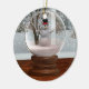 Lightweight, smooth, pure white ornament with nice sheen. Perfect size to be seen from across the room ... and to attract closer inspection! Price was great for ordering enough for the whole family! Clear, bold black design just as requested. Matches the order exactly. Just so nice!