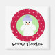 A little snowman with a light toque on his head accented by a bright border with dots. A fun winter saying.