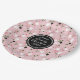 Adorable snow people with snowflakes, holly, and candy canes on pink make a great fun winter holiday Christmas personalized party dinner paper plate, with a sweet retro feel and the words (Your family name) Family Christmas, ready to customize with your name and date, or any message of your choice.