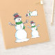 A cheery-but-chilly looking snowman wears a red-ribboned top hat and green scarf in this wintry illustration by Richard H. Fay.