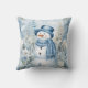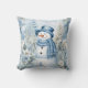 Snowman Winter Snow Blue Hat Scarf Throw Pillow