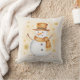 Cute snowman with gold and white snow falling all around. He is wearing a gold hat and scarf.