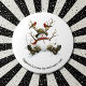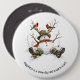 Playful winter illustration of a smiling snowman wearing a green hat and red scarf, with two bright red cardinals perched on its stick arms. The charming snowy design captures the cheerful spirit of the holiday season, perfect for festive accessories.