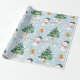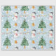 Snowman With Fir Tree In Watercolor Pattern Wrapping Paper