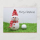 Snowman with golf ball on green grass Christmas Postcard