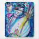 Whimsical ,colorful and cool Winter night illustration ,watercolor painting in vibrant blue white,pink,colors .