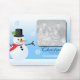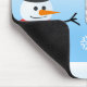 Snowman mouse pad with a cute snowman wearing a red scarf and a black hat on a fading blue background, who is enjoying the winter season as snowflakes of different shapes keep falling down. Ideal gift for Christmas or any other occasion. © Morning 6