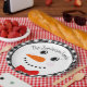 Snowman with Red Bowtie Black Buffalo Plaid Trim, winter holiday Christmas Party Paper Plates