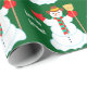 Wrapping paper with cute snowmen wearing a floppy hat, red mittens and colorful scarf. The images, background and text can be personlaized. Original artwork by W.B.
