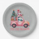 Snowmen Driving Pink Truck Tree Gifts Paper Plates