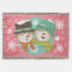 Snowmen Pink and Blue Holiday Throw Throw Blanket