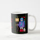 Enjoy hot chocolate, coffee, or your favorite beverage in this mug featuring a cute and whimsy snowman kid personalized with your or someone's name. The words "Snowmen Rule" and name can be easily customized. The snowman is wearing a turquoise and blue toboggan and scarf and a lavender purple sweater and is holding a sign that says "we rock". A redbird is flying close by and stars are on the black background. A peppermint striped bucket holds a pile of snowballs. This design is original art by Phyllis Dobbs and comes on coordinating products in this /phyllisdobbs store. Fully customize for your event for Christmas or winter events.