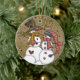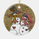 Snowmen with stocking and top hats against a sky full of stars on a keepsake ornament that snowman lovers are sure to delight in!