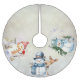 "Snowmen" Tree Skirt. Add a touch of whimsy to your holiday decor with our charming Christmas tree skirt, featuring delightful snowmen. This enchanting design showcases three adorable snowmen in unique poses, set on a faux glitter background, making it the perfect accessory to celebrate the season. Spread joy and warmth under your tree and create lasting memories with this festive piece that captures the spirit of Christmas.