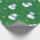 Snowmen with Emerald Green Background Wrapping Paper